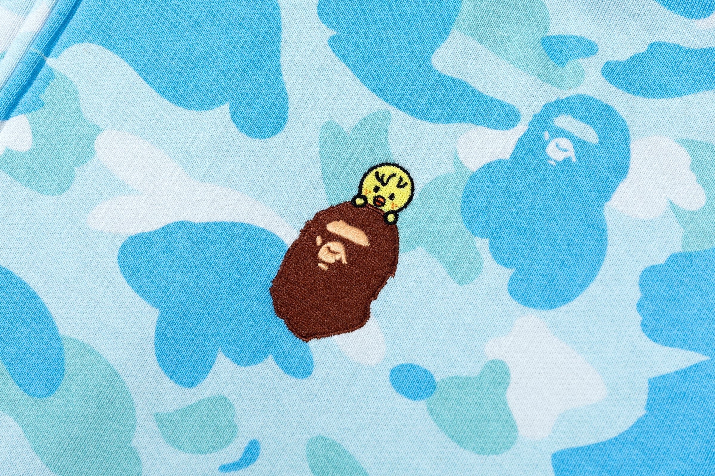 BAPE® reinvents its iconic Shark Hoodie, with each Stray Kids member selecting a favorite COLOR CAMO and three embroidered letters to reflect their individuality. SKZOO characters peek out playfully from the Shark’s teeth.