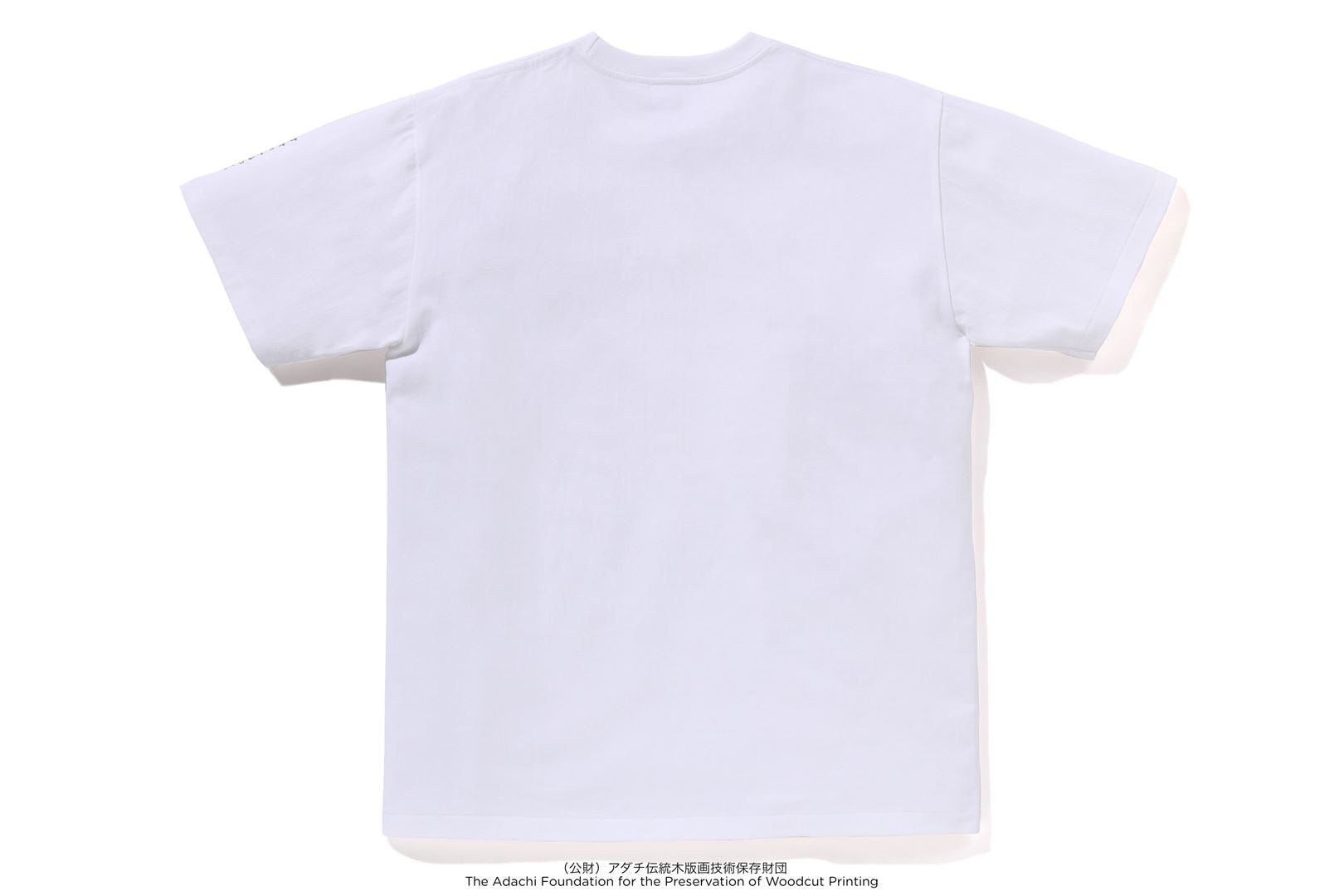 The T-shirts come in four styles, each featuring APE HEAD graphics that incorporate iconic artworks by Hokusai and Kuniyoshi. These legendary pieces are reimagined in vibrant BAPE CAMO and framed within the APE HEAD silhouette, with the BAPE brand name laid out in Katakana. Each design also features the artist’s rakkan (signature seal) printed on the left sleeve. Available in three colors: white, black, and navy.