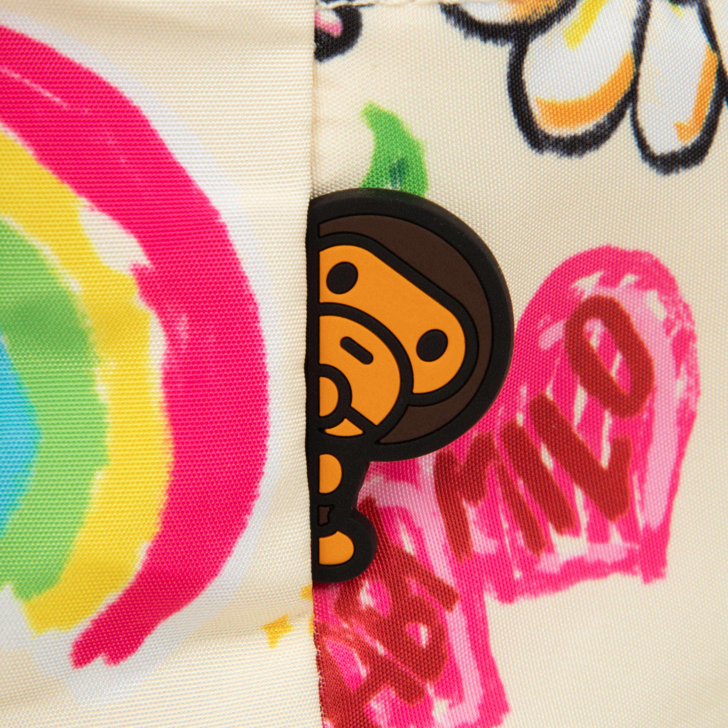 Featuring the playful BABY MILO design, this medium-sized backpack blends fun style with practical function. It includes a roomy main compartment, front zip pocket, and adjustable straps, making it perfect for everyday use while showcasing signature BAPE character graphics.