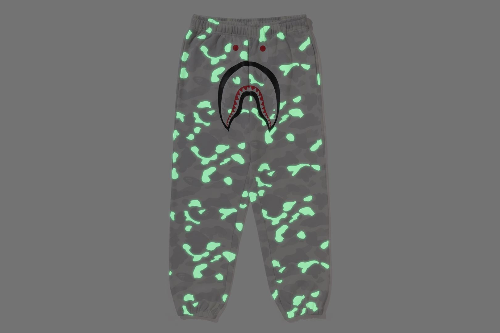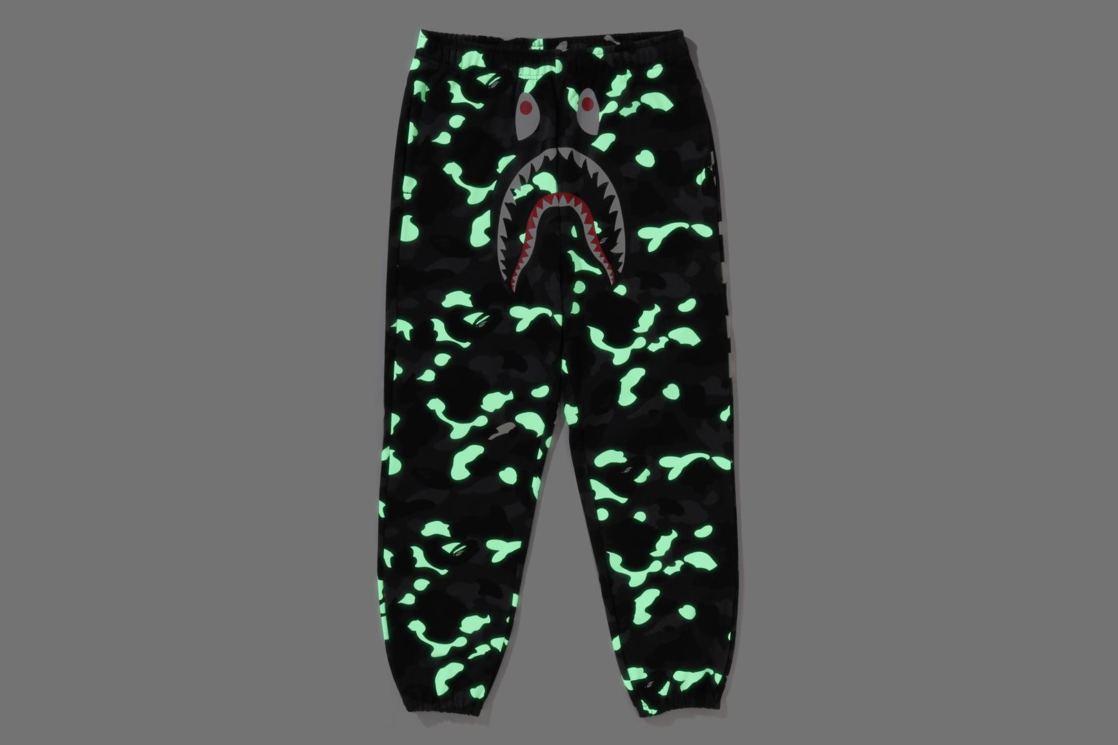 Crafted in BAPE®’s signature CITY CAMO with glow in the dark fabric, these sweatpants feature the iconic Shark motif in a relaxed fit.