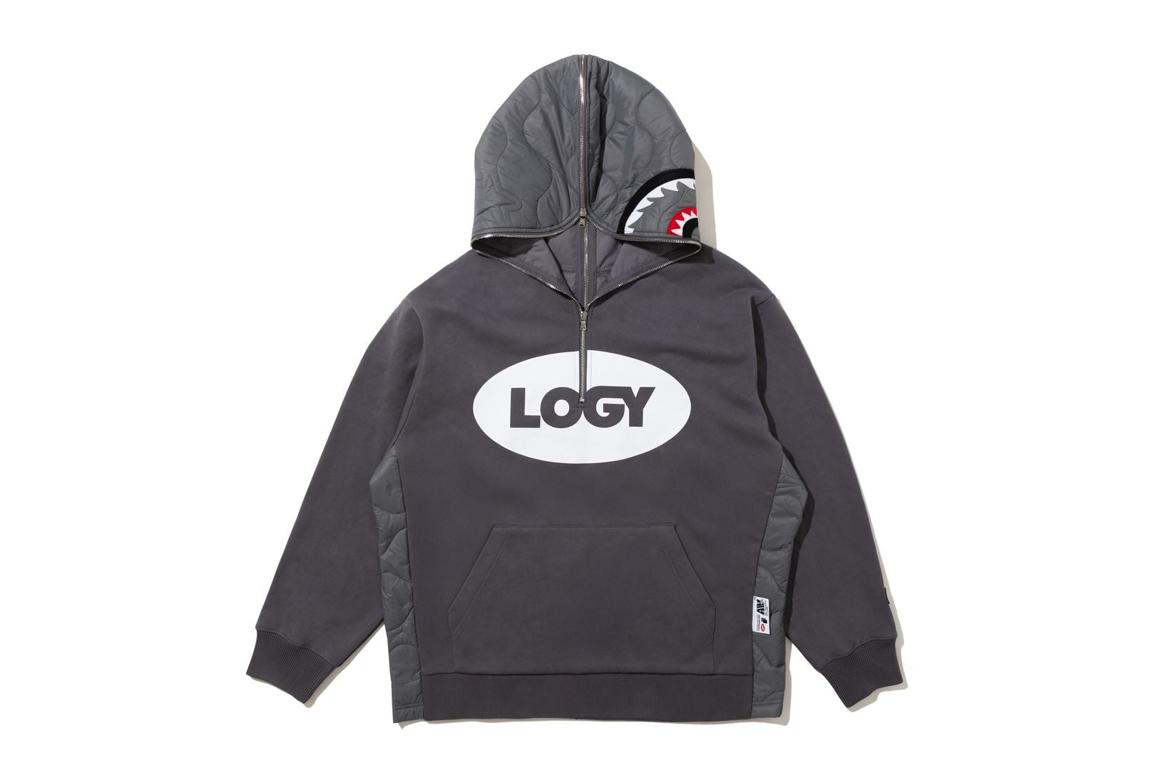 BAPE X KAZUKI LOGY HALF ZIP SHARK RELAXED FIT PULLOVER HOODIE