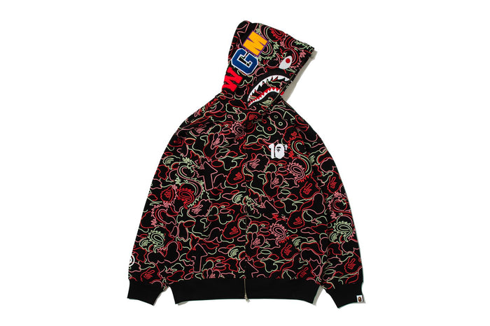 BAPE X 88RISING GLOW IN THE DARK CAMO SHARK FULL ZIP HOODIE
