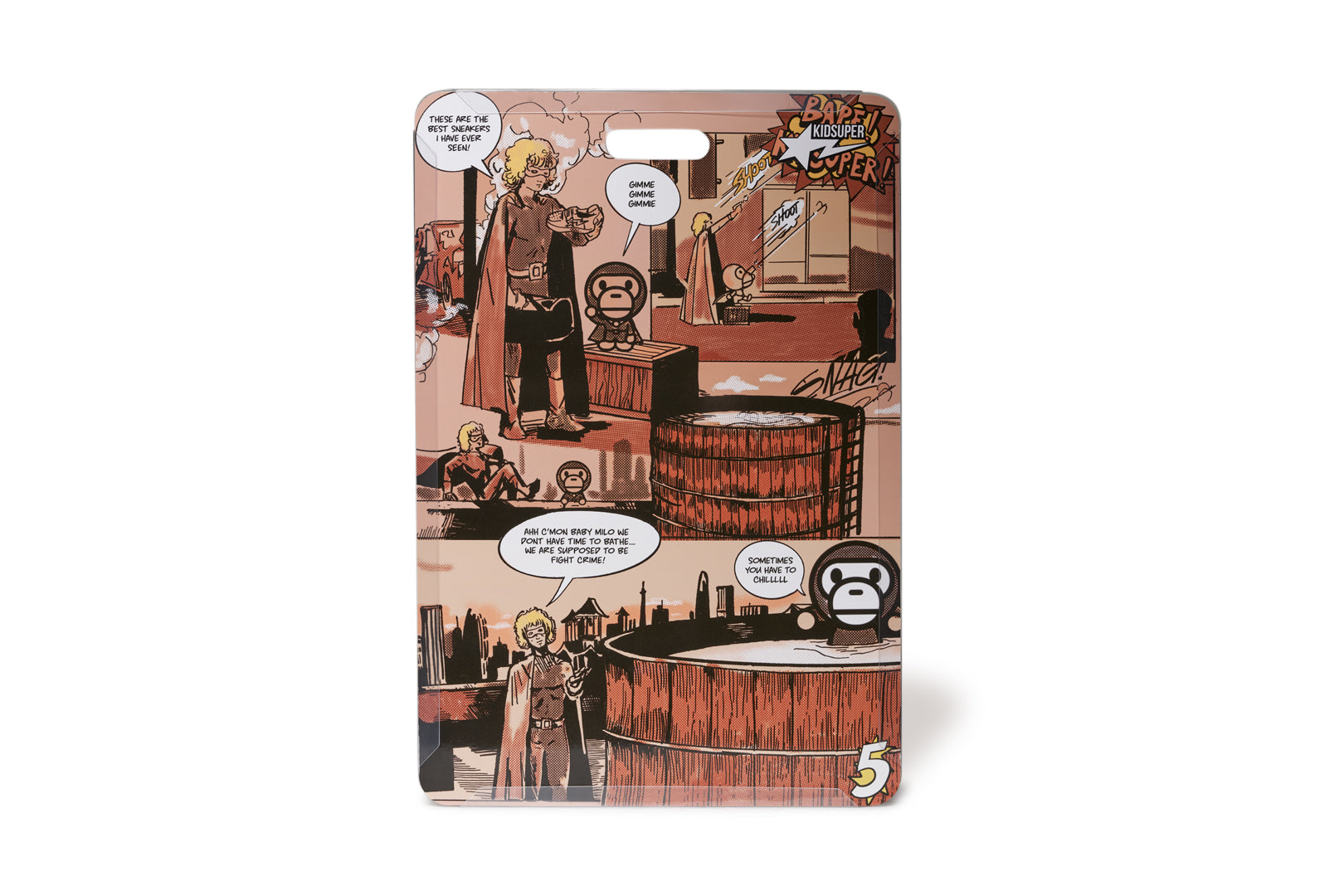 The BAPE® by KidSuper co-creation is a full circle moment for Colm Dillane and BAPE®, as early in his career, Dillane would distribute his products to streetwear enthusiasts in line for BAPE® drops by setting up an ironing board to screenprint shirts on the spot. Today, he shifts from screenprinting for the line to launching his own Line.