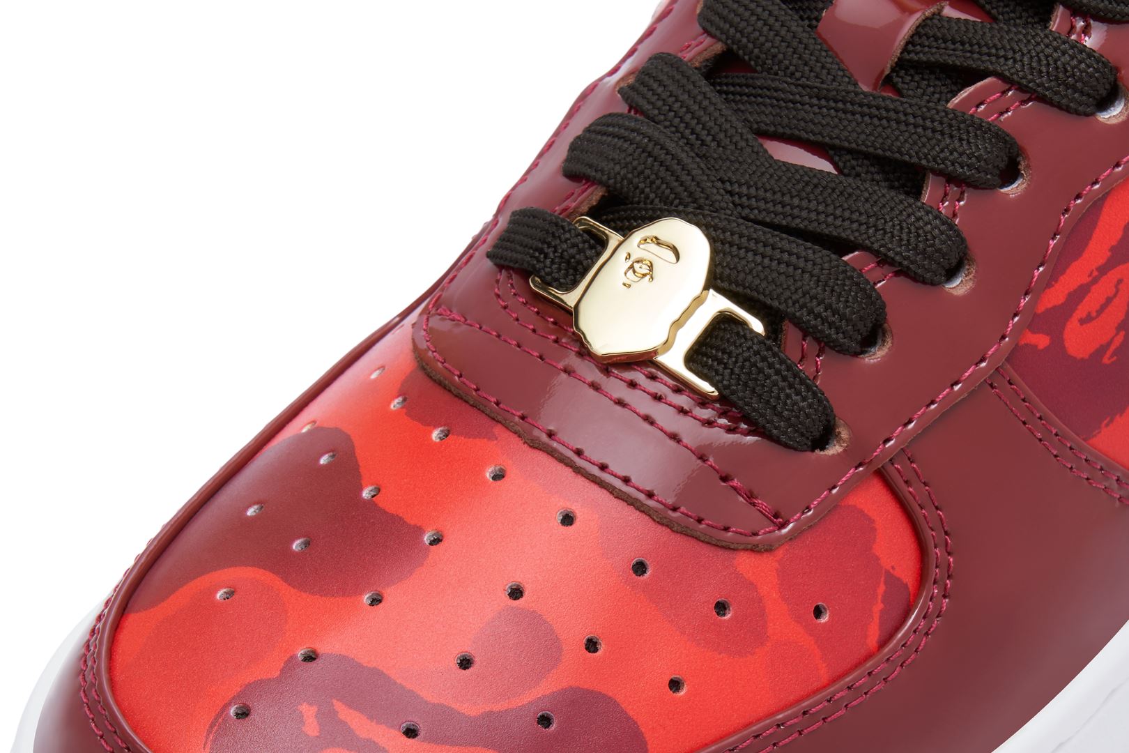 The classic BAPE STA⢠highlights red and gold colourway constructed with phantom-based leather. The uppers feature a patent leather upper with various red overlays and gold STA logo, mixing in an element of elegance and festive touches and drawing inspiration from staple design to create new ways of celebration to the upcoming holidays.