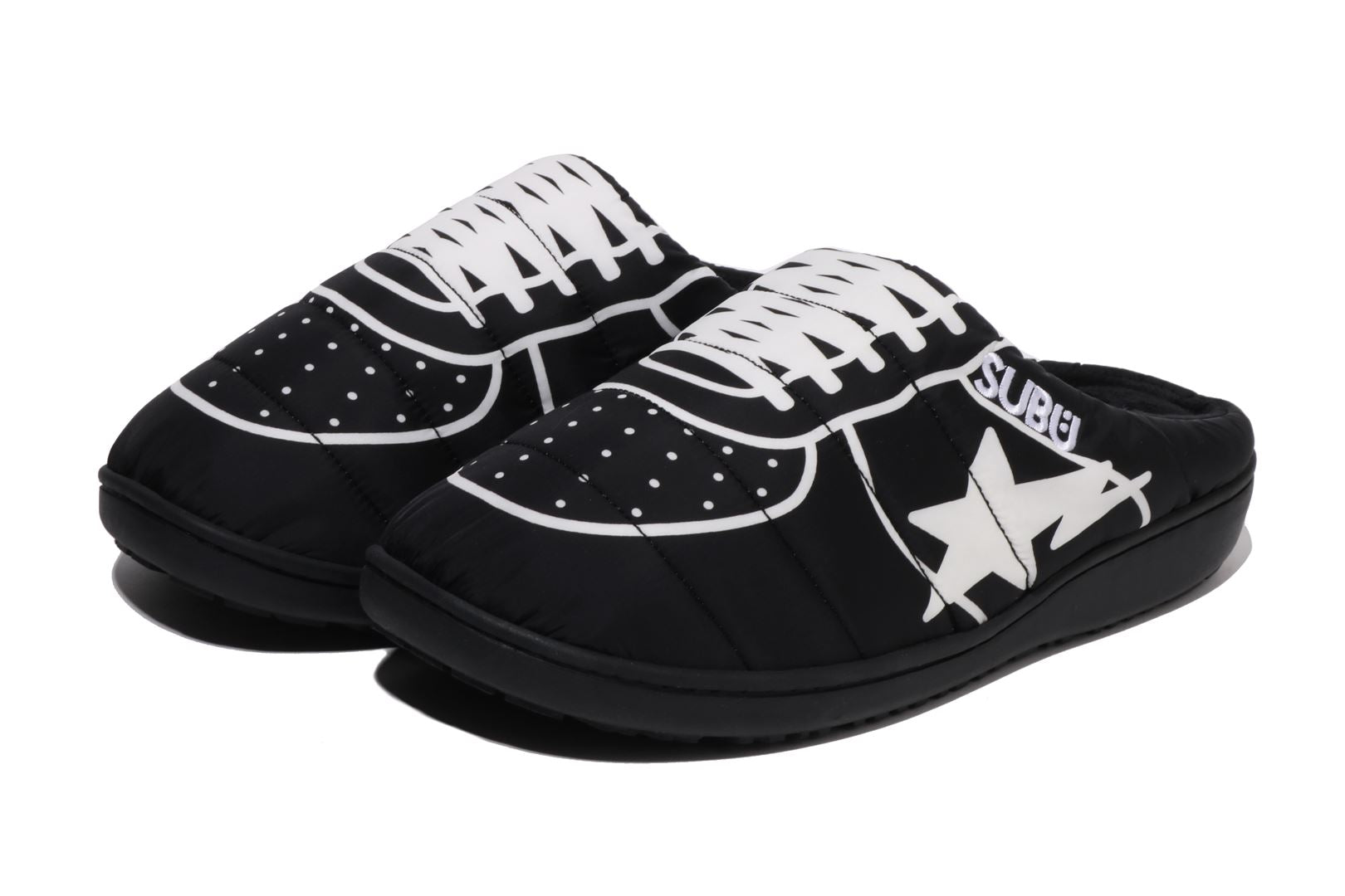 This collaboration features a reimagined BAPE STA drawn design, applied across SUBU’s signature padded silhouette. Finished with bold graphic detailing and a durable sole, the pair blends everyday comfort with unmistakable BAPE streetwear identity.