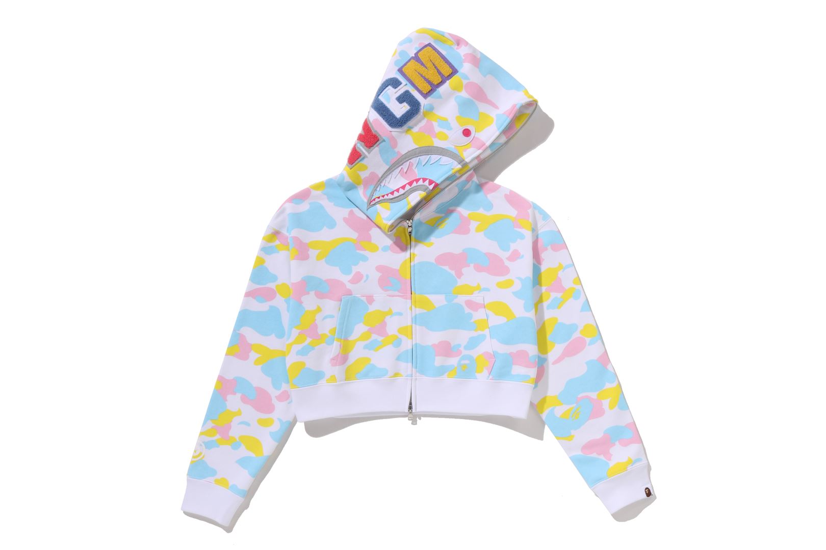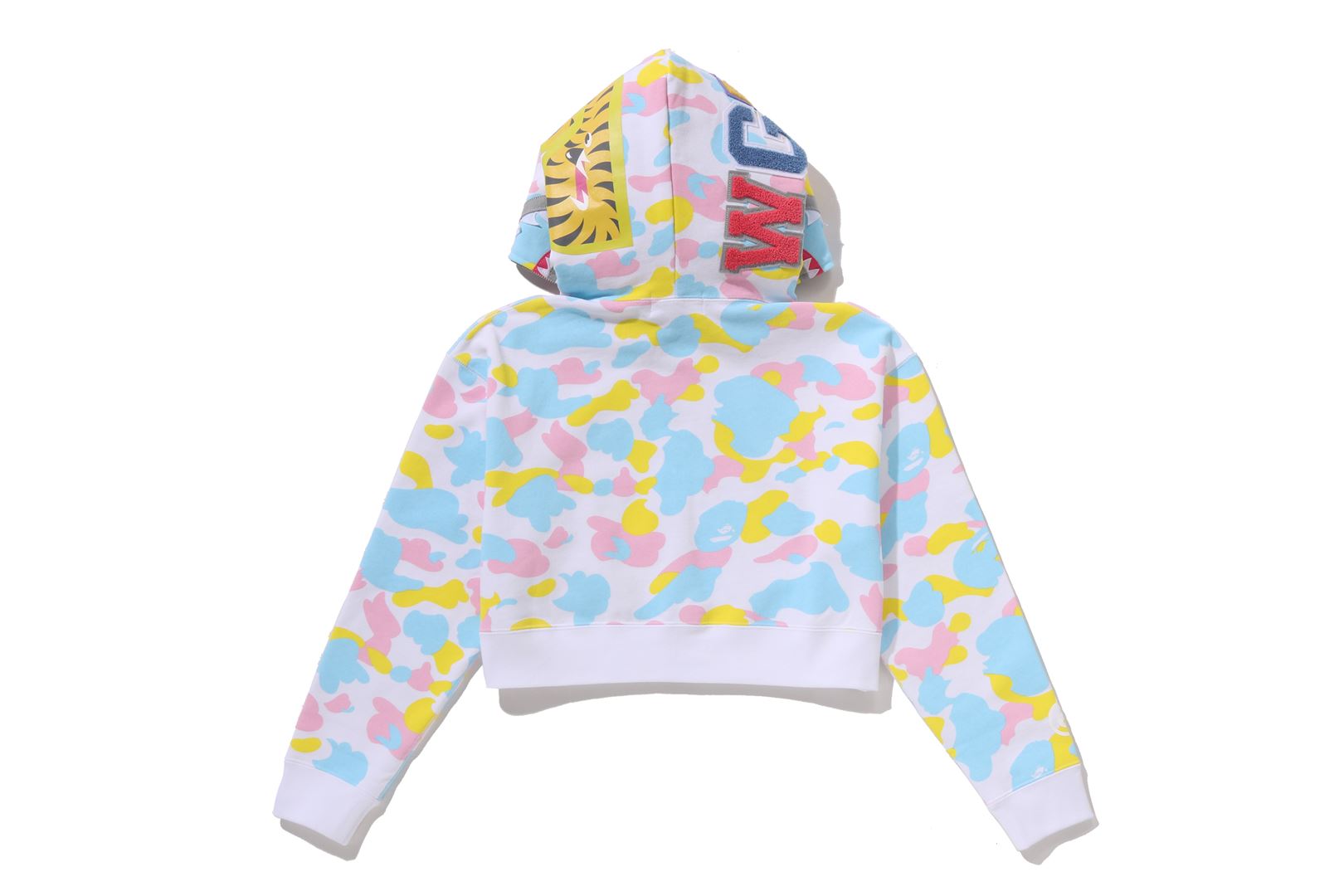 NEW MULTI CAMO SHARK CROPPED FULL ZIP HOODIE LADIES