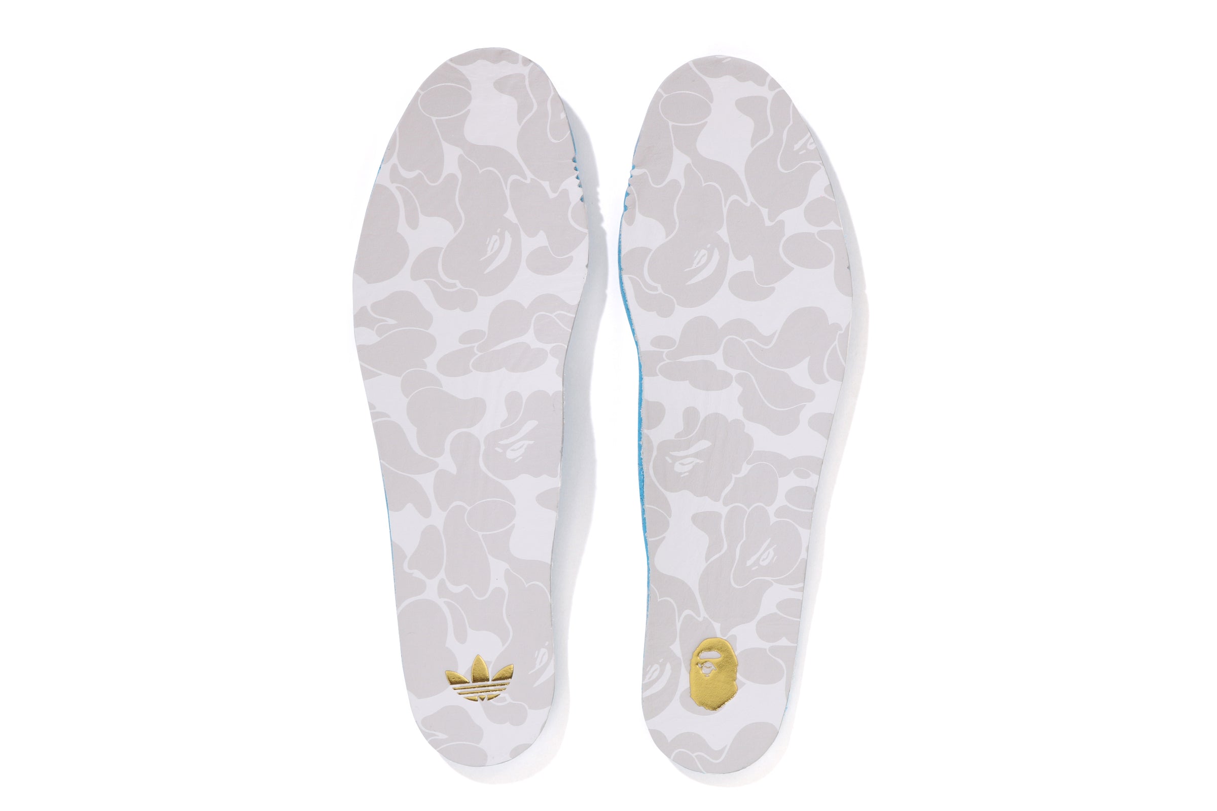 Moving from the field to the street, BAPE has brought its distinct lens to the iconic adidas Originals Samba sneaker. First made for soccer and now a certified lifestyle icon, the legendary Japanese label has reimagined the classic silhouette with an aniline grained leather upper – all-the-while swapping out the signature suede toe box overlay for a SKULL STA face in a rubber finish. The right shoe then features a BAPE STA on the lateral, with 3-Stripes on the medial, while the left shoe boasts the inverse treatment. Each pair is completed with gold foil detailing, co-branded camo sock liners, and is available in two distinct colorways: white with black and grey details, as well as black with white accents.
