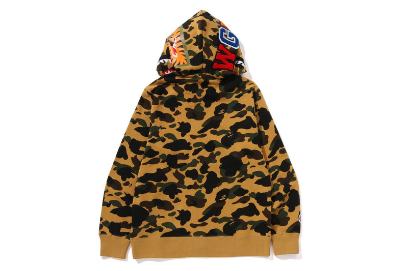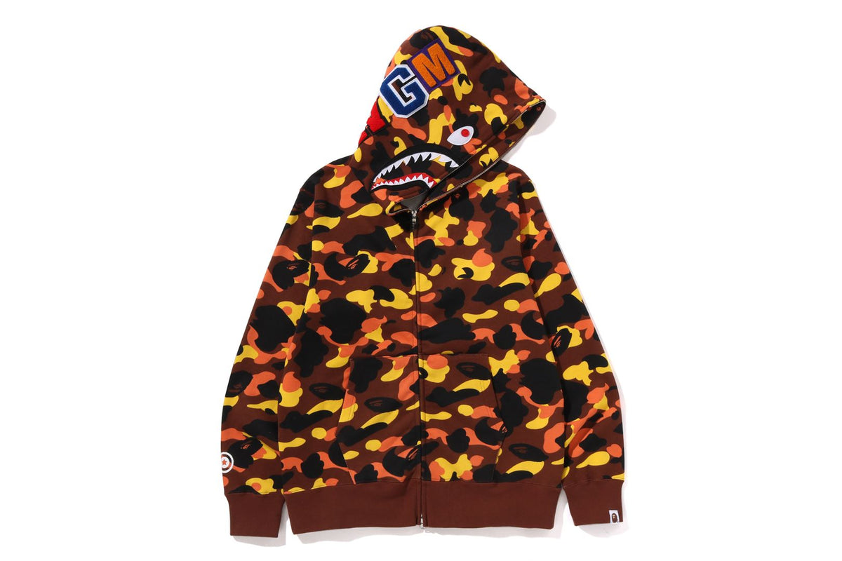 BAPE MENS COTTON 1ST CAMO SHARK FULL ZIP HOODIE JACKET features a striking full zip design with bold graphics that clearly represent BAPE. This season, the iconic camo pattern appears in timeless yellow and green shades, now energized with vibrant orange—crafted fresh for today’s generation.