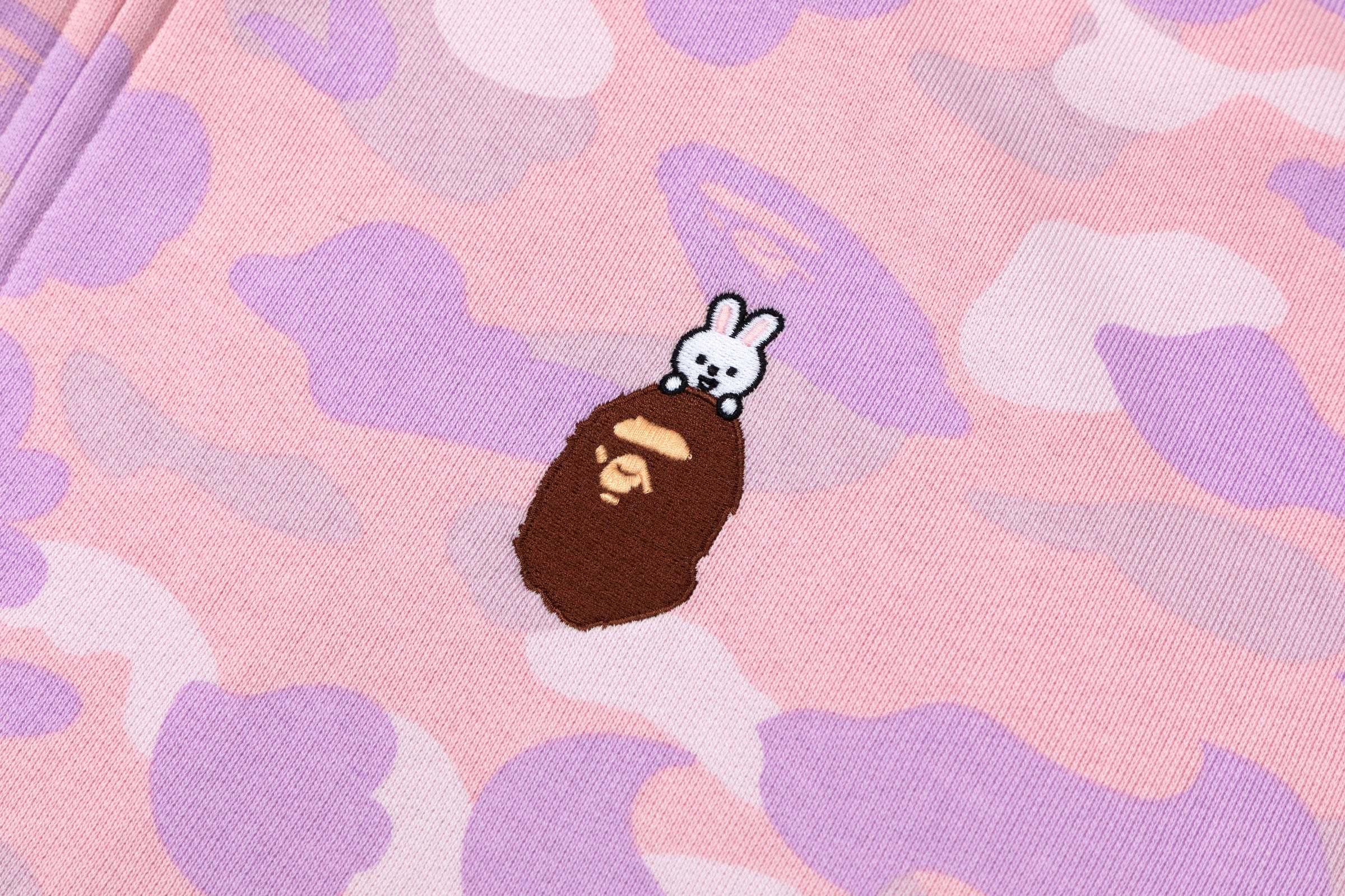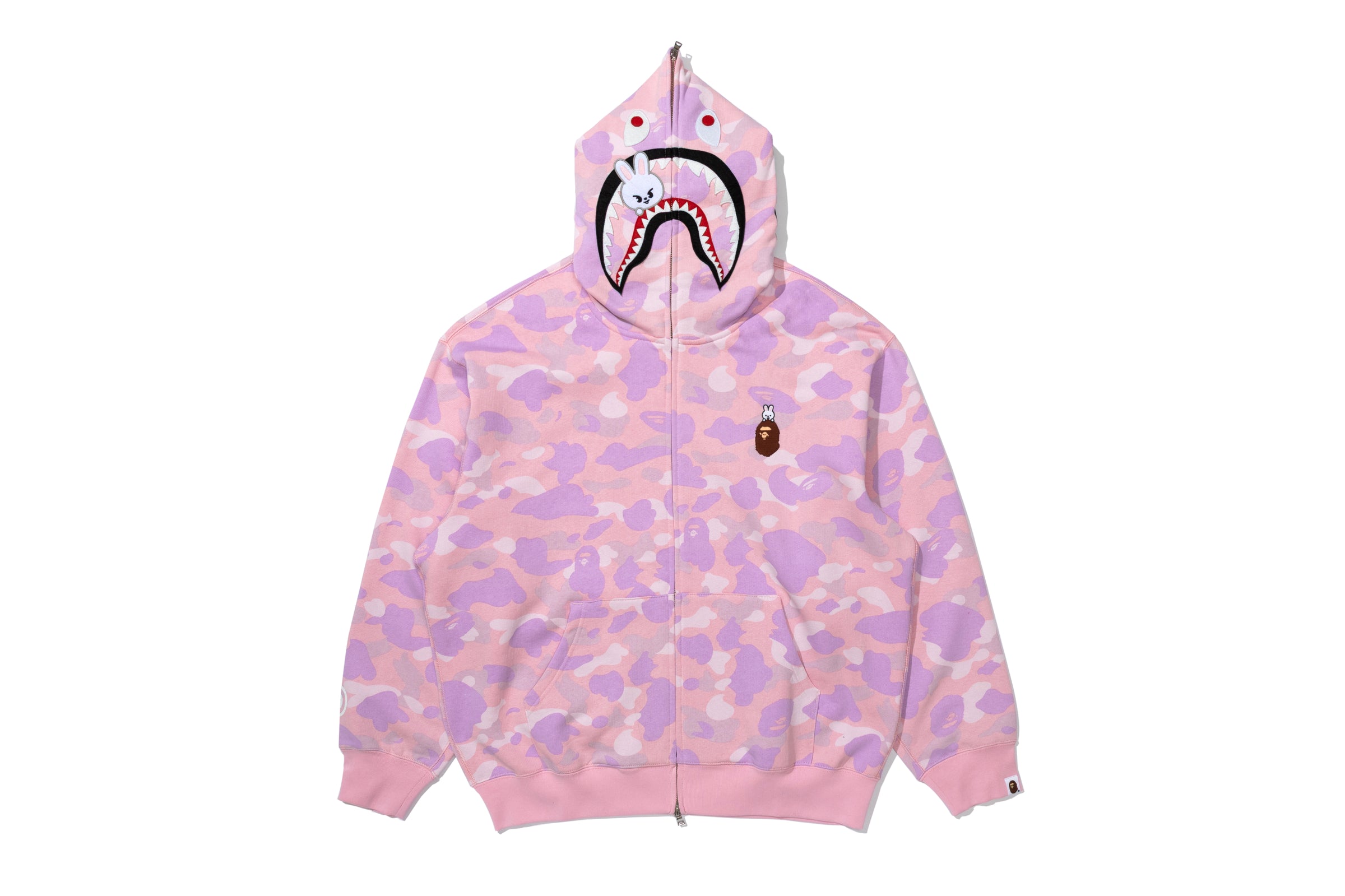 BAPE® reinvents its iconic Shark Hoodie, with each Stray Kids member selecting a favorite COLOR CAMO and three embroidered letters to reflect their individuality. SKZOO characters peek out playfully from the Shark’s teeth.