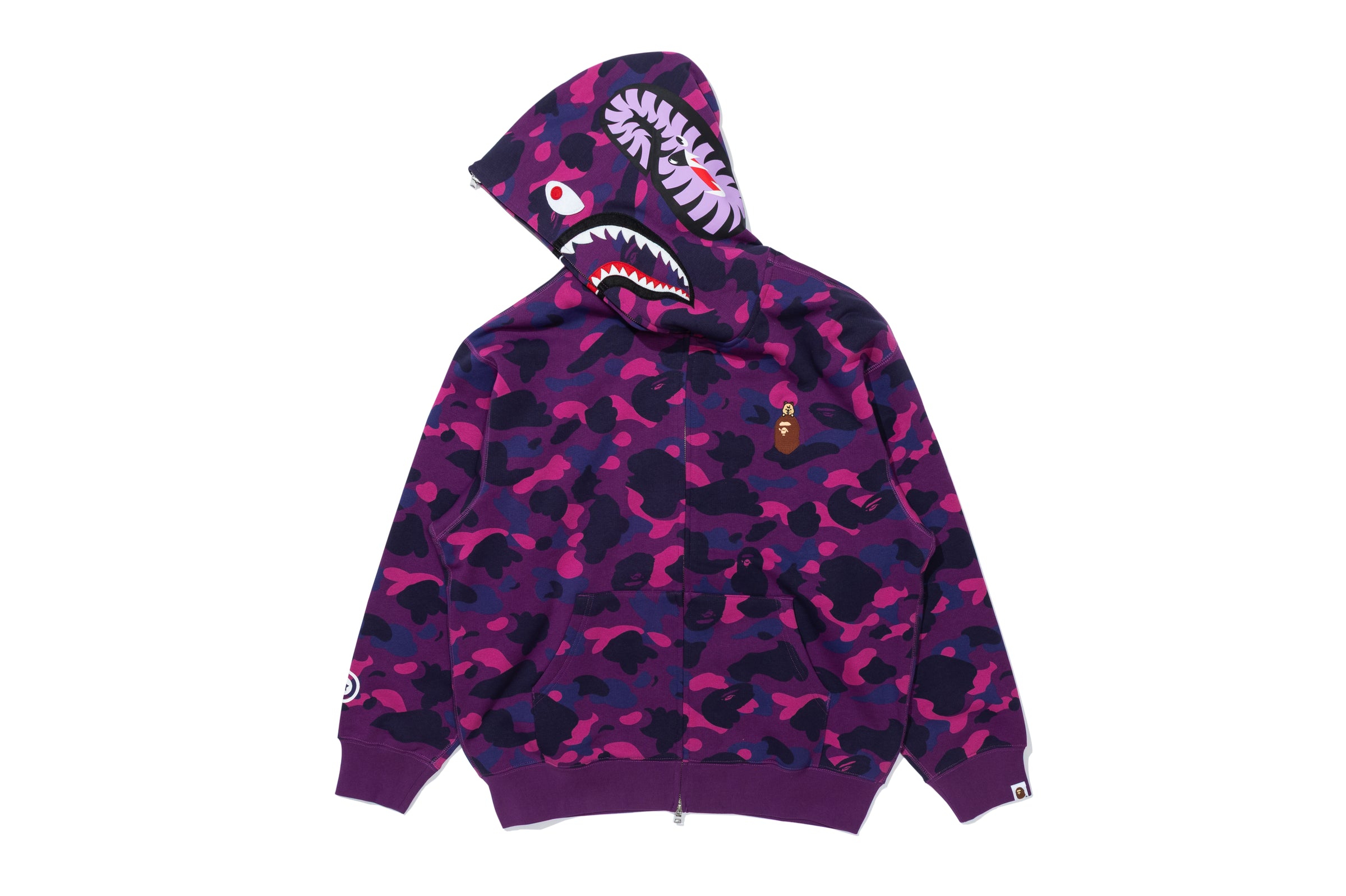 BAPE® reinvents its iconic Shark Hoodie, with each Stray Kids member selecting a favorite COLOR CAMO and three embroidered letters to reflect their individuality. SKZOO characters peek out playfully from the Shark’s teeth.