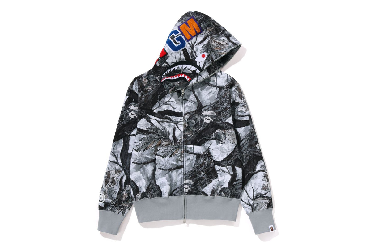 BAPE WOMENS COTTON TREE EDGE CAMO SHARK FULL HOOIDE JACKET design reinvents a classic look, celebrating the heart of storytelling from ’90s and ’00s hip-hop culture. It connects artists and their music, blending sound and style into a striking visual story. The iconic Shark Full Zip Hoodie returns in Tree Edge Camo with warm, natural tones, turning everyday clothing into a bold statement of confidence and unique expression.