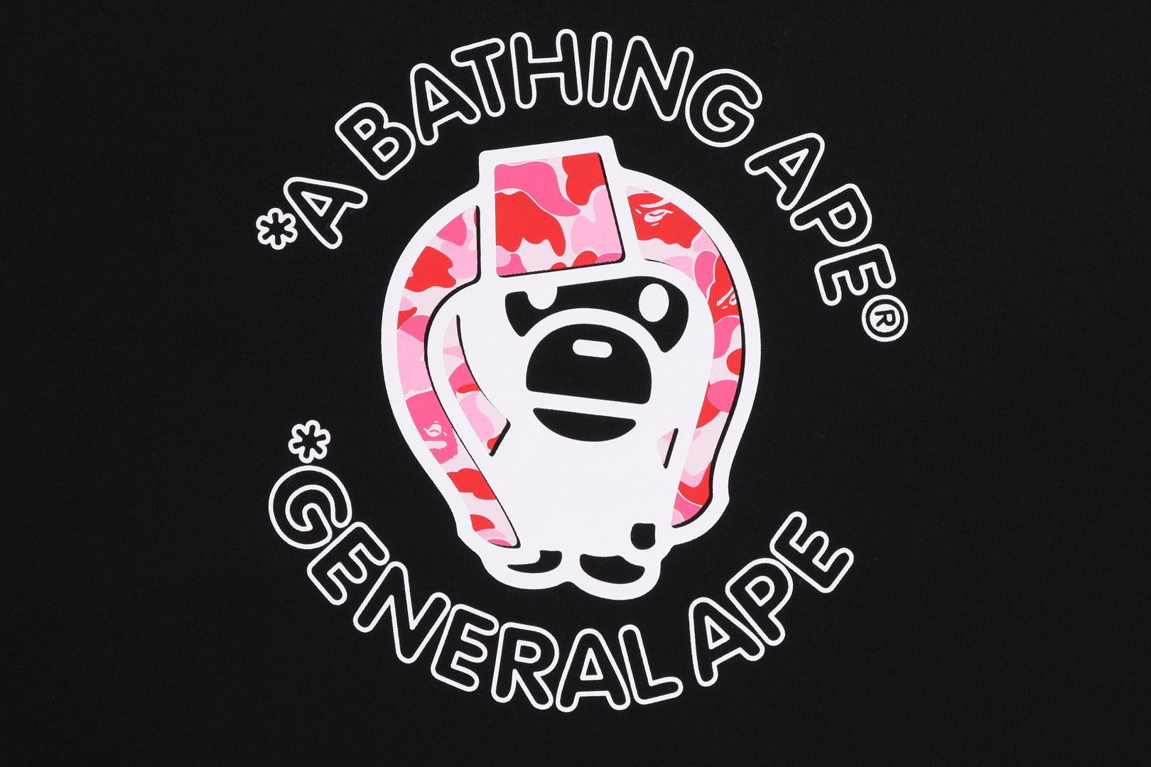 A classic T-shirt featuring a bold General Ape graphic at the chest with A Bathing Ape branding. Designed with a comfortable everyday fit and finished with signature BAPE detailing on the sleeve. A standout graphic piece with timeless streetwear appeal.